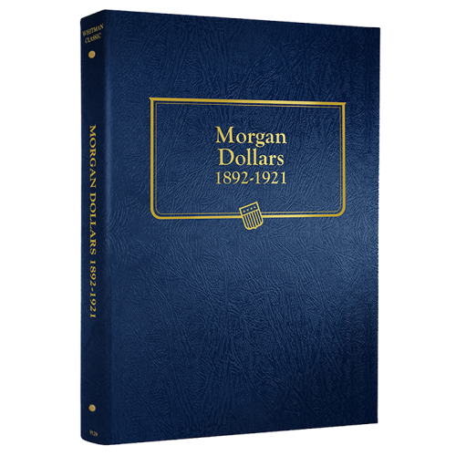 The is the Whitman Morgan Dollars Coin Album dated from 1892 through 1921 with a total of 44 ports. Whitman Coin Albums are easy to identity by their blue leatherette textured exterior and page notches. These notches make it very easy to remove the clear slides to gain access to your coins.