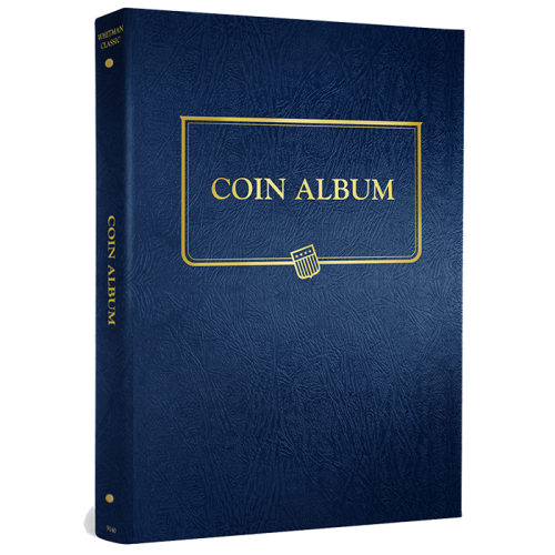 This universal Whitman binder is empty and will accommodate up to 8 of the Whitman pages available in this category. Whitman Coin Albums are easy to identity by their blue leatherette textured exterior and page notches. These notches make it very easy to remove the clear slides to gain access to your coins.