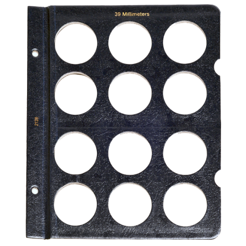39mm openings. 9 openings per page. Fits all Whitman brand albums. Slides included.
