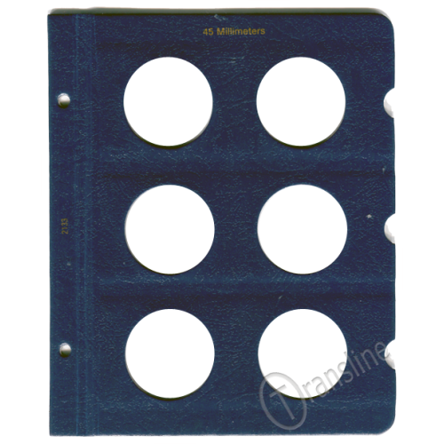 This blank Whitman page is made to hold your 45mm size coins and contains a total of 6 unlabeled ports. These Whitman pages have a classic blue texture, 45 Millimeters is printed at the top and feature notches. These notches make it easy to remove the clear slides to gain access to your coins. Plastic slides included.