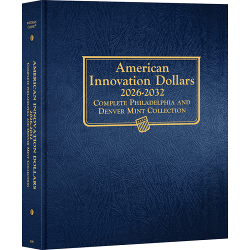 The Whitman Classic Coin Album offers an elegant way to store and display your collection of coins.. Durable, soil-resistant leatherette cover Labeled openings with historical and mintage info Clear plastic slides protect both sides of each coin Thumb notches for easy page removal This album includes 4 (supports a maximum of 6) pages with a total of 60 openings designed for circulation-strike coins from the Philadelphia and Denver mints from the years of 2026 through 2032.