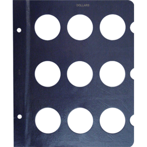 This blank Whitman page is made to hold your US Dollar size coins and contains a total of 9 unlabeled ports. These Whitman pages have a classic blue texture, Dollars is printed at the top and feature notches. These notches make it easy to remove the clear slides to gain access to your coins. Plastic slides included.