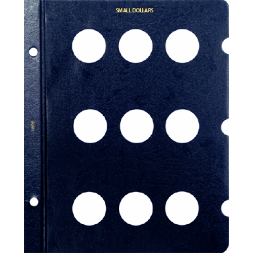 This blank Whitman page is made to hold your US Small Dollar size coins and contains a total of 9 unlabeled ports. These Whitman pages have a classic blue texture, Small Dollars is printed at the top and feature notches. These notches make it easy to remove the clear slides to gain access to your coins. Plastic slides included.