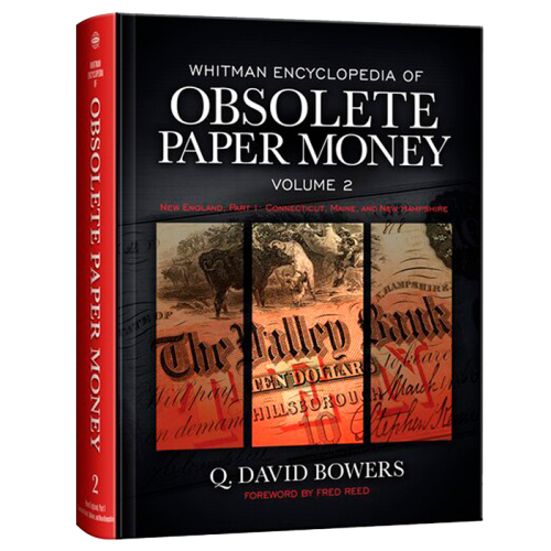 The second volume of Q. David Bowers' multiple-book Whitman Encyclopedia of Obsolete Paper Money covers in great detail the states of Connecticut, Maine, and New Hampshire. Bowers gives historical narrative for every town, city, and bank involved in producing notes in these states from 1792-1866; note-by-note values in multiple grades, current rarity levels, significant auction results, and other marketing data based on ongoing research; full-color images, and more.