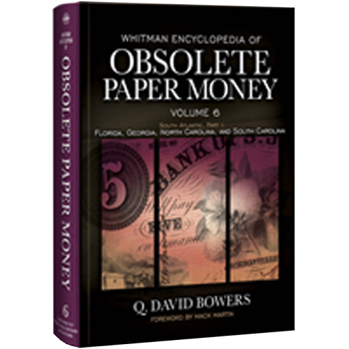 The sixth volume of Q. David Bowers's multiples-book Whitman Encyclopedia of Obsolete Paper Money covers in great detail the states of Florida, Georgia, South Carolina, and North Carolina. Bowers gives historical narrative for every town, city, and bank involved in producing notes in these states from 1792 to 1866; note-by-note values in multiple grades, current rarity levels, significant auction results, and other market data based on ongoing research; full color images and more. Volume 6 is the first volume on the South Atlantic states; two more volumes will cover the remaining Southern states in similar detail.