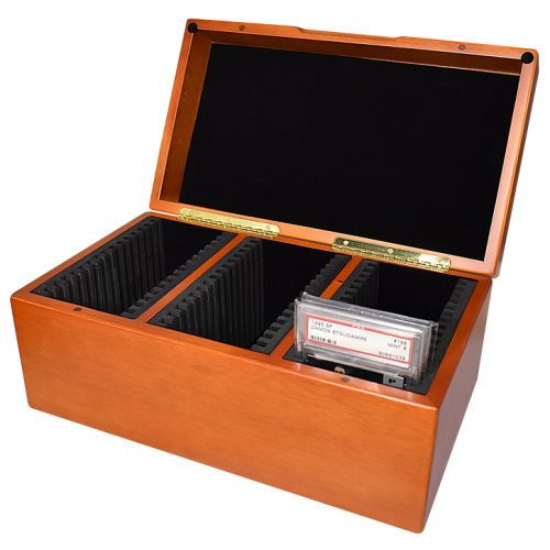 Solid wood storage and display box designed to hold 45 PSA graded cards. !